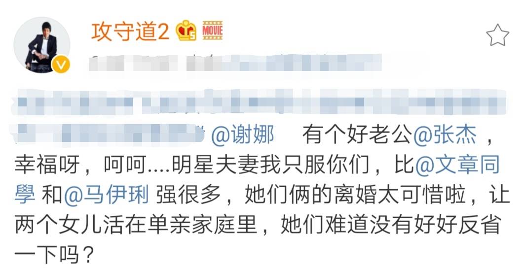 飞龙先是说道:“谢娜,有个好老公张杰,幸福呀,呵呵……明星夫妻我只服你们,比文章和马伊琍强很多,他们俩的离婚太可惜啦,让两个女儿活在单亲家庭里,他们难道没有好好反省一下吗?”
