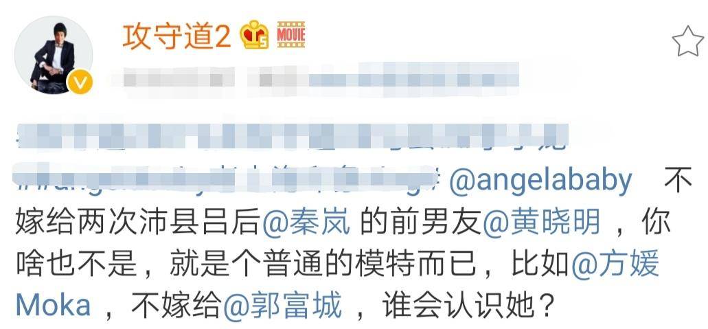 随即,飞龙对黄晓明杨颖这对夫妇也予以评价,不过飞龙觉得杨颖之所以能够出名,还是依仗着黄晓明,不然杨颖绝不会像今天这么火:“杨颖不嫁给两次沛县吕后秦岚的前男友黄晓明,你啥也不是,就是个普通的模特而已,比如方媛,不嫁给郭富城,谁会认识她?”