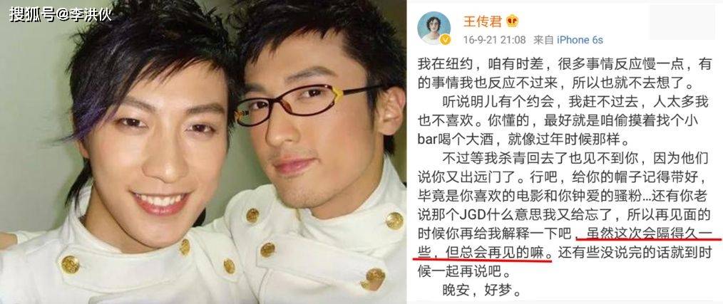王传君还没有从母亲离开的悲痛中走出来便传来了朋友乔任梁离世的消息。他与乔任梁在《加油!好男儿》中相识,慢慢地两人成为好哥们。之后二人一起合作了电视剧《爱情回来了》。朋友离世之时王传君远在他乡,只能在社交平台表达对朋友的想念。他的言语中始终不愿意相信这是真的。最后一句:虽然这次会隔很久一些,但总会再见的嘛。无法想象王传君当时写出这句话的心情。