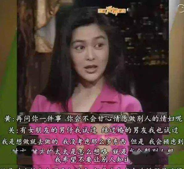 关之琳说什么类型的情妇都尝试过,尽量不让对方知道。