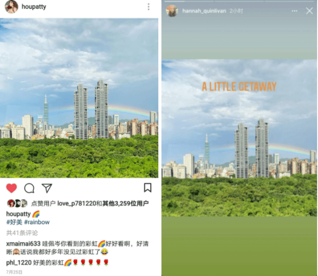 这彩虹图难道不是和侯佩岑7月拍摄的照片一模一样吗?