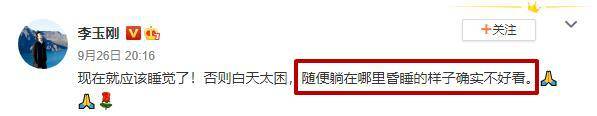 9月26日晚8点,李玉刚在社交账号上发文,称昏睡的样子确实不好看,侧面回应睡姿事件,言辞平淡,却颇显情商。