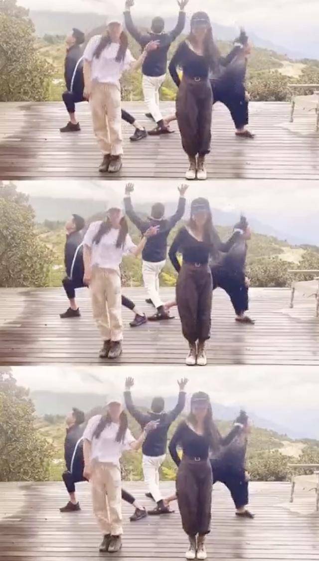跳的过程中,窦骁还偷瞄何超莲,跟着她有样学样。