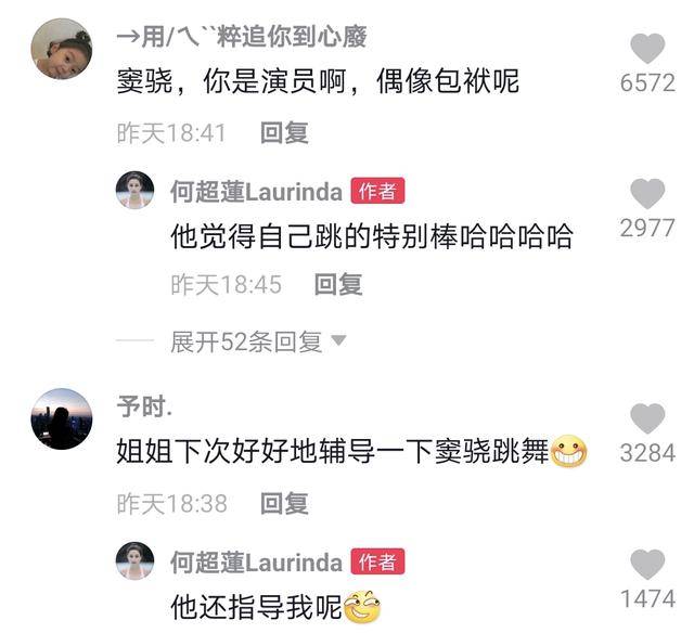 也有网友让何超莲好好辅导一下窦骁跳舞,没想到蜜汁自信的窦骁还指导何超莲呢?
