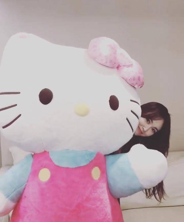 唐嫣抱着Hello Kitty爱不释手,简直少女感满满,哪里看得出来是个要奔四的人了。
