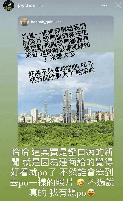 今日份尴尬之二:昆凌疑似盗取周杰伦前女友侯佩岑的一张彩虹图。