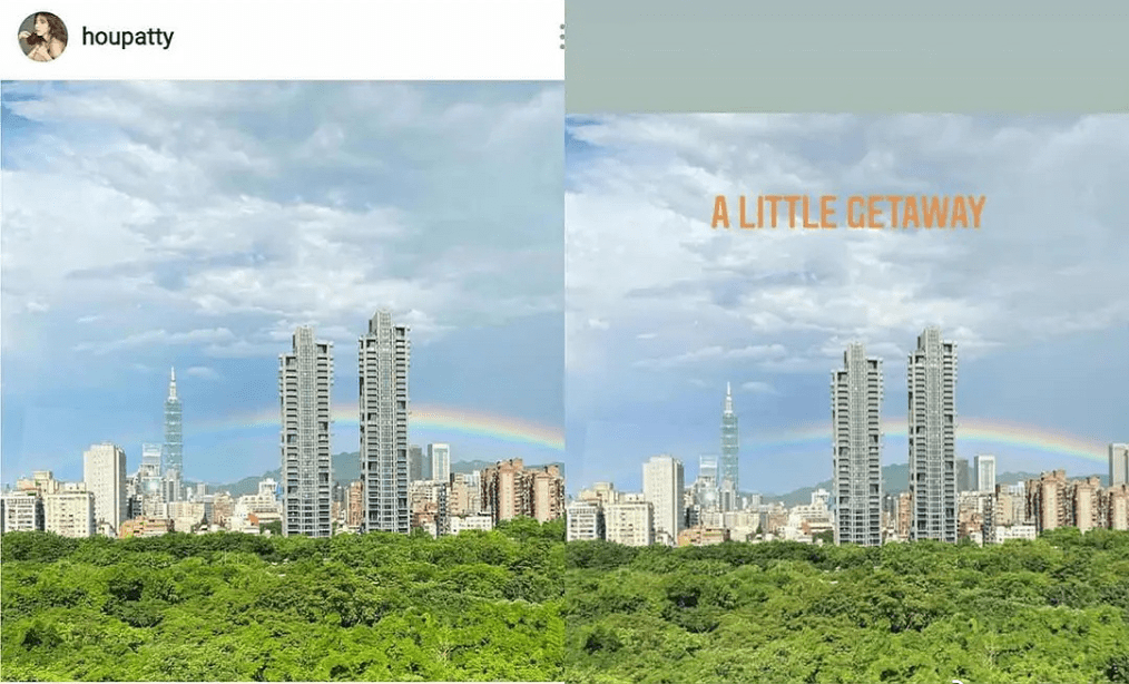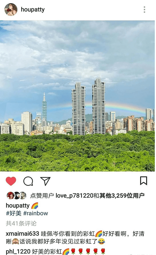 更尴尬的是,昆凌居然说自己“ALITTLE GETAWAY”,其间偶遇美丽的彩虹,那就是说昆凌跑到侯佩岑附近旅游,又抑或说,昆凌长期关注侯佩岑的社交账号。
