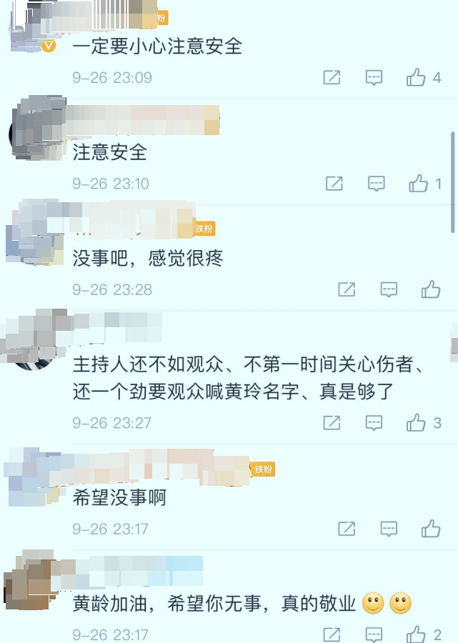 有网友看到两位主持人的反应,认为他们太冷血,没有给予黄龄足够的关怀与保护,但也有人表示,主持人的临场应变能力还可以,在忙乱之中成功控场。