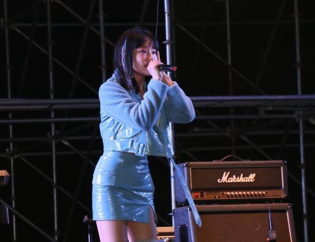 黄龄站起来继续将歌曲演唱完,当晚一共献唱三首歌曲,敬业精神令人佩服。