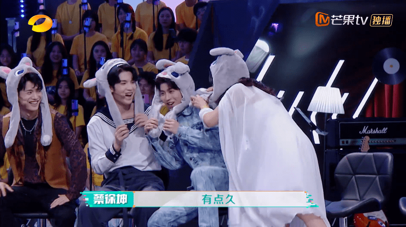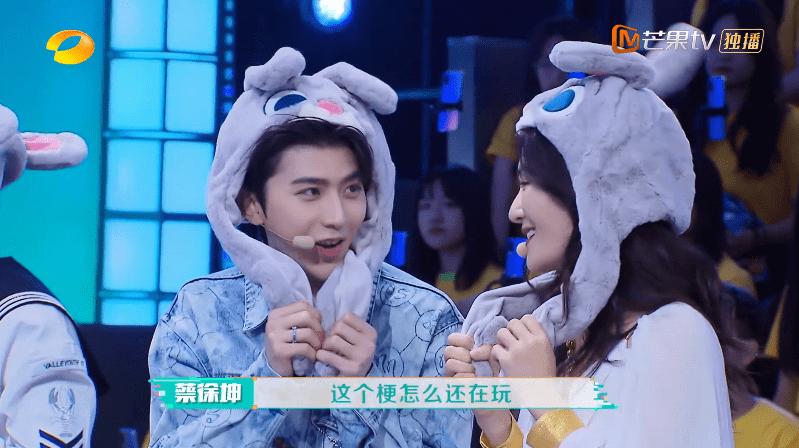 再看另一位嘉宾蔡徐坤,虽然没有跟baby一样取搞笑的名字,但本期节目中蔡徐坤却贡献了好几个梗和笑点。