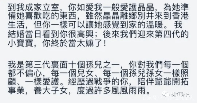 吕燕妮生前非常喜欢这个大孙子,连带着孙媳妇也异常偏爱,这一点在霍启刚发的纪念文章里也一目了然: