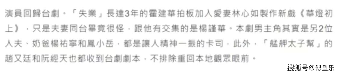 而这次,我国台湾的媒体爆料出霍建华即将要加盟自己妻子林心如的新剧《华灯初上》。此剧林心如是制作人,而男女主角分别是霍建华和杨谨华。不得不说,霍建华这是为了给自己的妻子捧场吗?而这次霍建华参演的是我国台湾的电视剧,并不一定会在大陆掀起什么收视的狂热。在社交平台中,有的网友发出疑问,为什么现在霍建华会突然变得不温不火?