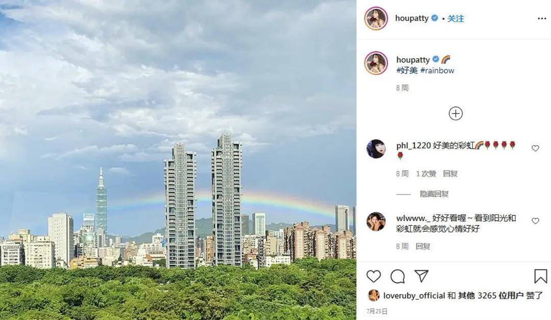 最近,昆凌在ins晒的一张彩虹照,和侯佩岑在7月发布的一模一样,不过现在已经删了。