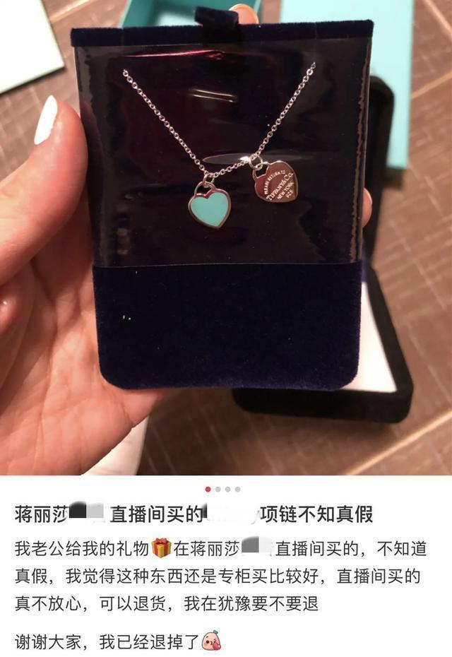之所以这位网友会这样觉得,是因为日前蒋丽莎在直播间出售的某品牌首饰包装与正版的包装不同,网友们声称正版用的是浅蓝色纸盒,而在蒋丽莎直播间购买的是丝绒盒的。