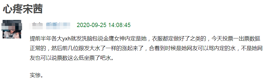 有投票就有非议,无论最初的情况是怎样,宋茜都算是为谭松韵挡住了了不少骂声。另外,这一届金鹰节几个引人注目的奖项都以观众投票为主,减少了专业评委打分的成分,对于这样的评奖方式,也让不少网友开始质疑奖项的公信力。