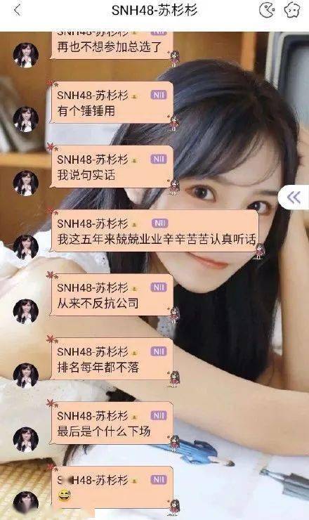 唉,SNH48这种女团真的年年都这样,粉丝都送丝芭诈骗公司的外号了,别说偶像生气,粉丝也生气啊,辛辛苦苦每年打投几百万,爱豆一点资源都没有,谁不生气啊。