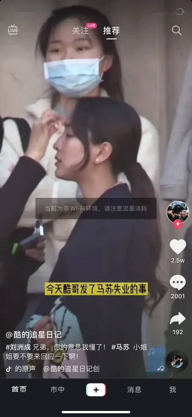 情况就是这么个情况,有人在抖音发了马苏拍戏的视频,说她以前一年几部戏,现在几年才一部戏,大意就是惨,结果刘洲成闻讯而来,二话不说,就在评论区点了一个赞。