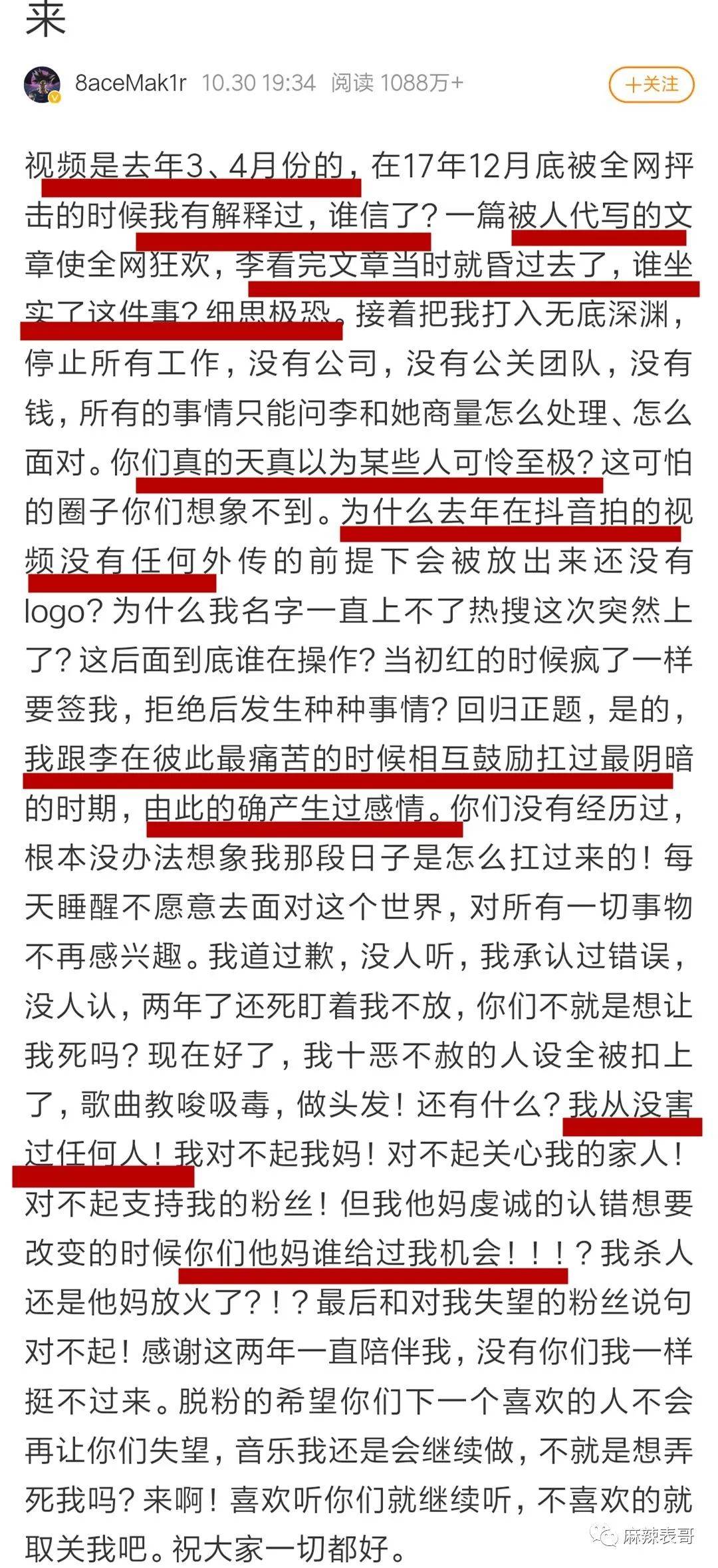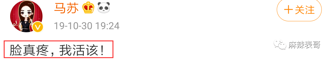 于是马苏毅然决然站到了吃瓜第一线,作为当事人发表吃瓜感言:脸真疼,我活该。