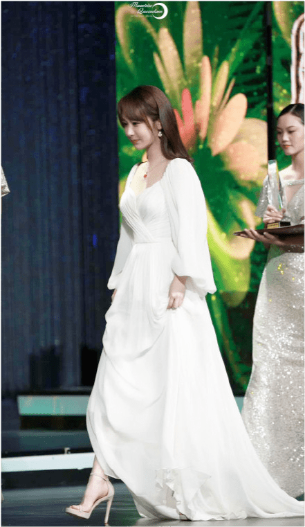 杨紫这次的造型非常低调,同时又不失大气。当天她身穿一条白色拖地长裙搭配浅粉色高跟凉鞋,整个人仙气十足。裙子领口处的设计也相当巧妙,方领又有点深V的感觉,大胆却不暴露,很好的显现出杨紫的脖颈处。及肩短发随意披散着,妆容也十分淡雅,给人感觉清新中又带点小性感。总而言之,杨紫此次的造型还是非常出彩的。