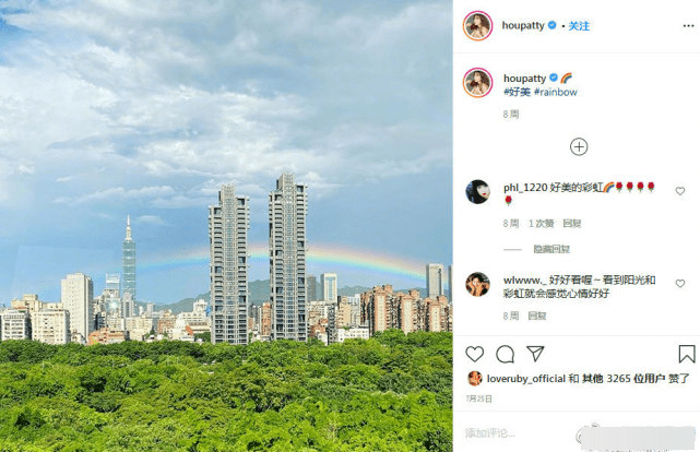 25日下午,周杰伦的妻子昆凌在社交平台晒出一张彩虹照,照片中一条彩虹横跨众多高楼大厦,近处有林,远处有山,看起来十分美好。自从与周董结婚后,昆凌也受到了很多人的关注,此次晒出的照片自然也被很多人转发、夸赞。不过让人尴尬的是,有网友发现昆凌的这张照片疑似盗用了侯佩岑的。