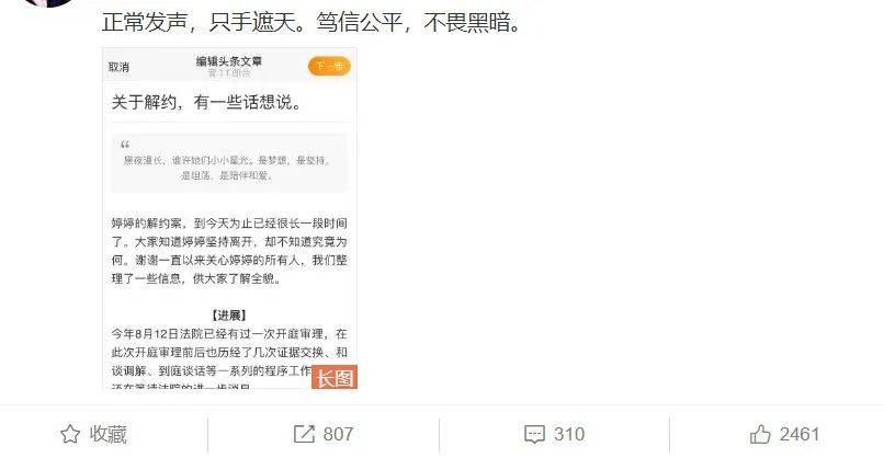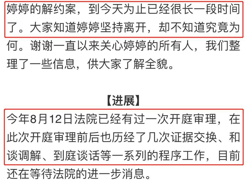 但看完这次她公开的信息之后,一般人应该都会有所改观,文中提到8月12日黄婷婷的解约案就已经有过一次开庭审理,在这前后也经历不少,也尝试进行了和谈调解,但从这里透露的信息看,双方似乎并没有达成合议,还在等待法院进一步消息,由此可以感受到解约并不是一件轻松的事,需要耗费很多时间和精力。