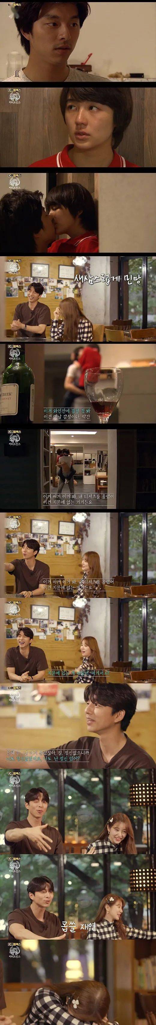 特别是孔刘指着剧中高恩灿撩起崔汉杰T恤的场面,说道:“看。把我的T恤撩起来了。这在剧本表演提示里是没有的”,旁边跟他一起看的尹恩惠尴尬地怒道:“这里哪有表演提示的”。