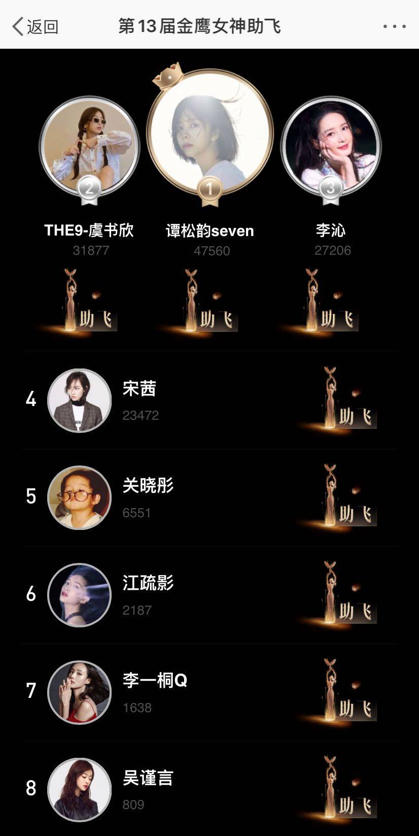 金鹰女神票选,谭松韵票数暂时领先,虞书欣就是