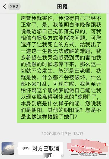 在与律师等人沟通后,她们一致认为,根据田蕤的一系列举动,怀疑他不是初犯,希望有更多有过被田蕤性侵害的受害人与自己取得联系。目前,该女生因为此事已经处于重度焦虑和重度抑郁症状。