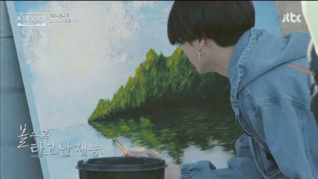 节目组在录制节目之前也询问到七位成员需要什么为他们准备,七位成员也回答道需要为他们准备一些画纸,而在第三期节目里面suga就为我们展现了他画画的技能,平时在直播里他也经常画一些渐变的画。而这一期忙田柾国也画了一幅临时起意的山水画,从未学过画画的忙内在画纸上也是描绘了眼前的山水景色,哥哥们看后也是表示十分的震惊。除此之外,他还在这一档综艺节目里面为我们公开了他在拳击上面的天赋,很爱运动的他也经常在这一综艺节目里面为我们展现他的健身画面。