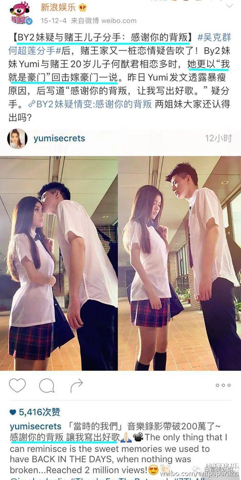 当时何猷君和BY2成员Yumi被爆分手传闻。