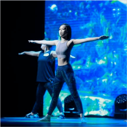 9月24日,冯盈盈穿瑜伽服出席海洋公园《深度游》体验发布会,在台上展现身体柔软度以及修长美腿。