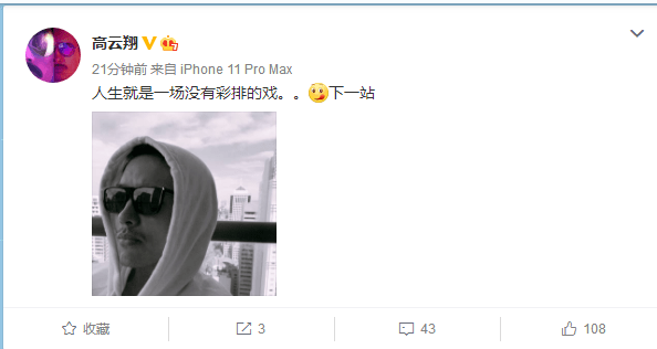 从内容上看,高云翔虽然感慨了世事无常,但也还算是没有太悲观。而在配图中,他戴着墨镜,眺望远方,似乎是在寻找新的人生方向。