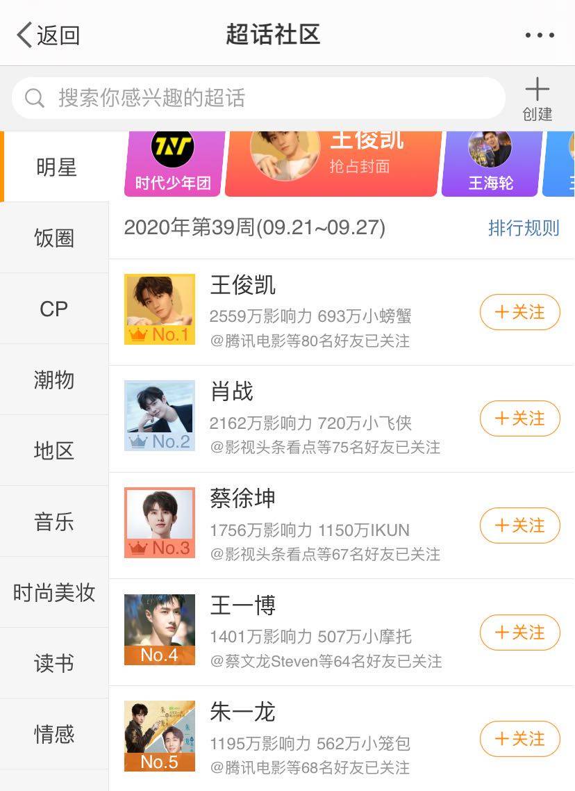 王一博超话明星榜排名第4名,这个也是很不错,至少已经进入前五强。