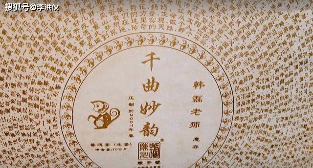 不仅如此,桌子上放着一个陈年大普洱圆心中间写着“千趣妙韵”四个大字,周围写着韩磊所唱1000多首歌曲的名字。