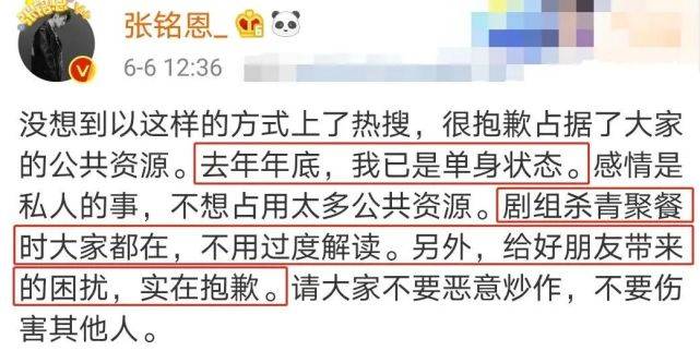 张铭恩恋情事件又有新的回应了。