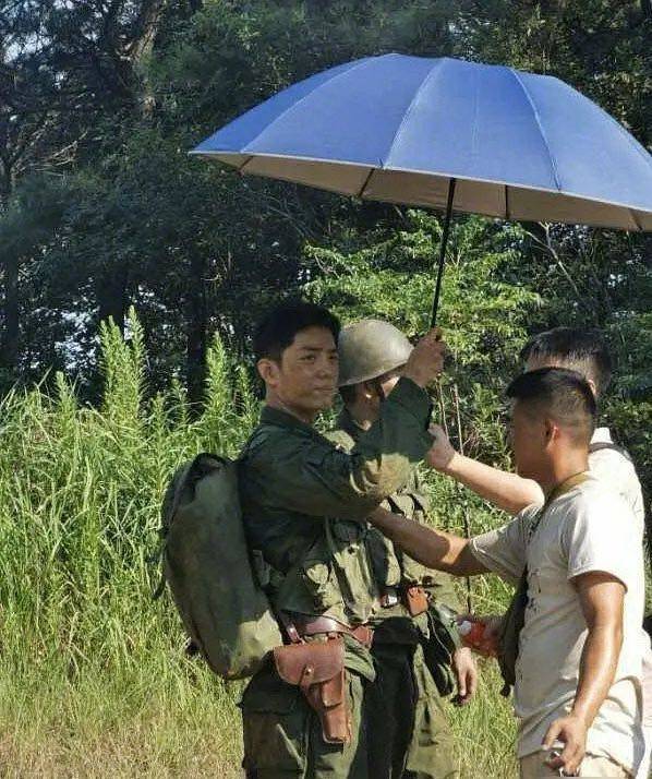 因为夏天的太阳很毒辣,拍摄空闲的时候还是会打伞遮住太阳,否则很容易被晒黑,而且肖战脸上看起来脸上涂了不少泥巴,可能在进行演习,背上还背着包,又热又累,看来当演员也是很不容易,不过也不是第一次经历拍摄的艰辛,在拍摄《陈情令》的时候也是经历了夏天的高温和炙热的阳光。
