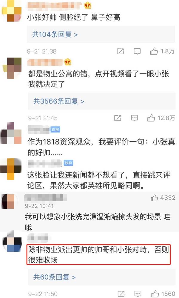 本来听见那么惨的遭遇,网友们应该很同情很投入才对。可网友听着听着就分神了,这都怪小张那张帅气的脸蛋!与之相关的视频新闻瞬间得到大量评论与转发,小张受到越来越多的关注。可网友们却纷纷把重点放在"小张好帅啊"、"小张好可啊"、"小张侧脸好绝啊""小张鼻子好高啊"……上面。三观跟着五官走的姐姐妹妹们在看到小张后,直接决定是物业的错!因为小张这么帅,声音那么好听,他怎么可能受伤!