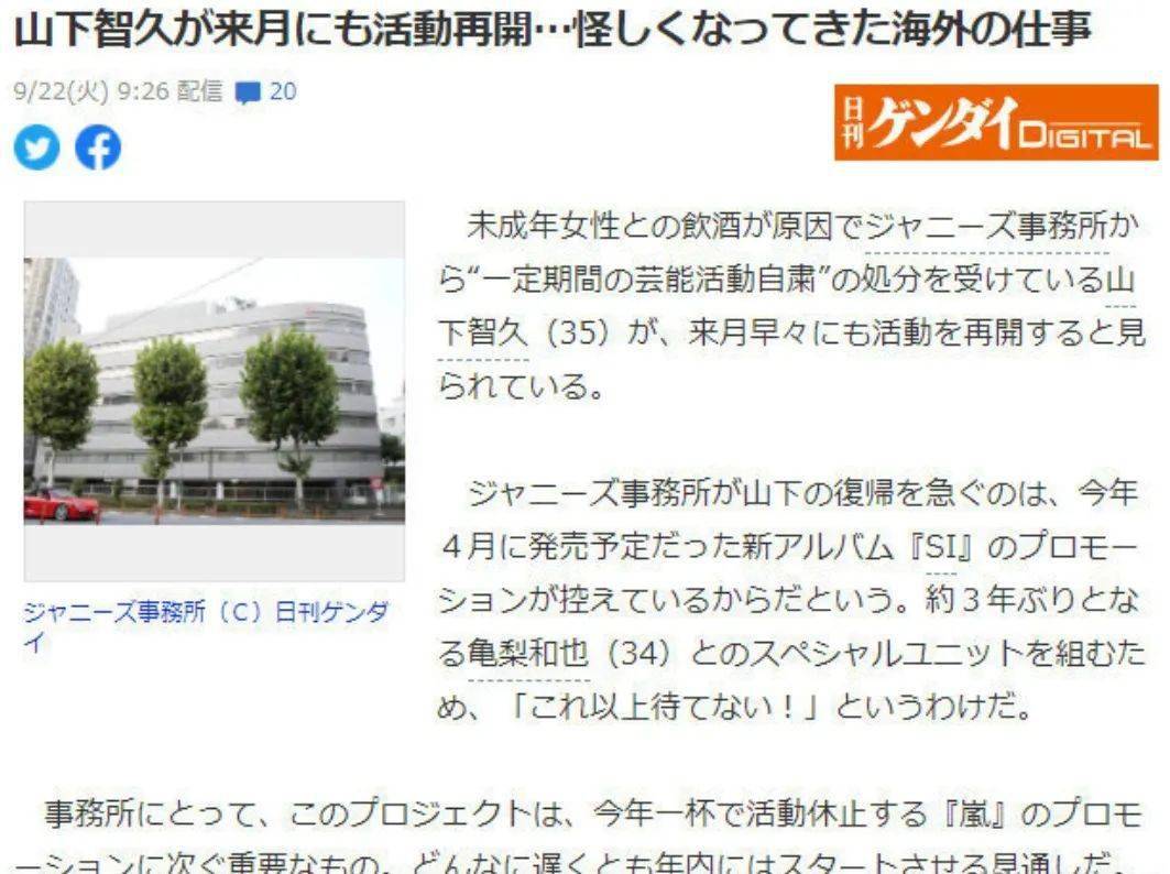 公司说法是,因负责山下智久海外业务的公司地处加利福尼亚州,当地法律对于有关未成年的犯罪管控力度非常大,所以山下智久海外发展受阻。