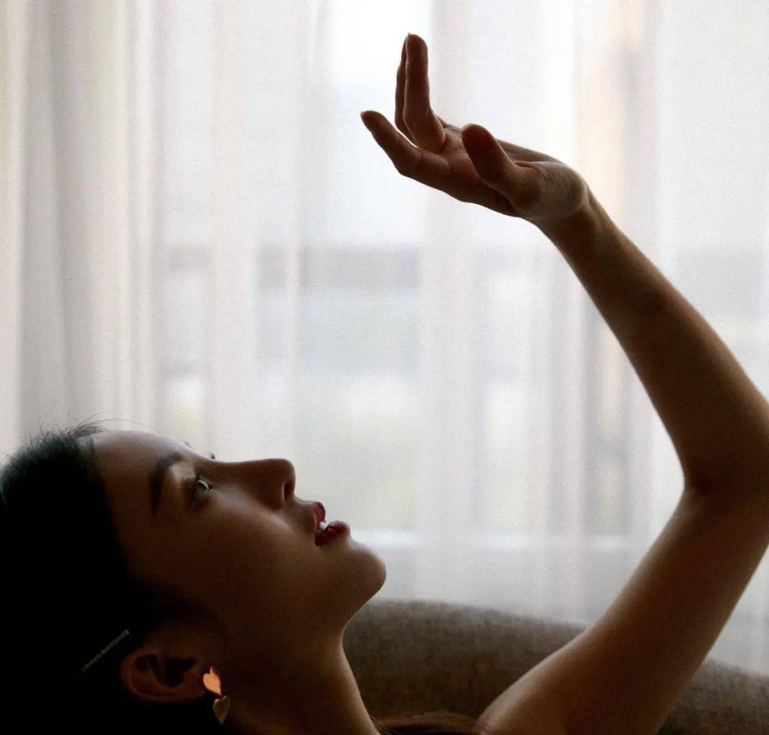 4、拿出细滑如白葱的双指,随随便便摸个嘴唇,都自带飞吻的诱惑力: ▼