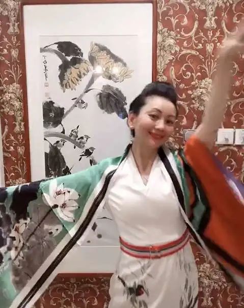 视频当中,谭梅穿着白色端庄长裙,面带微笑优雅地舞蹈,摇曳多姿的模样看起来颇有气质,完全看不出50岁的实际年龄。