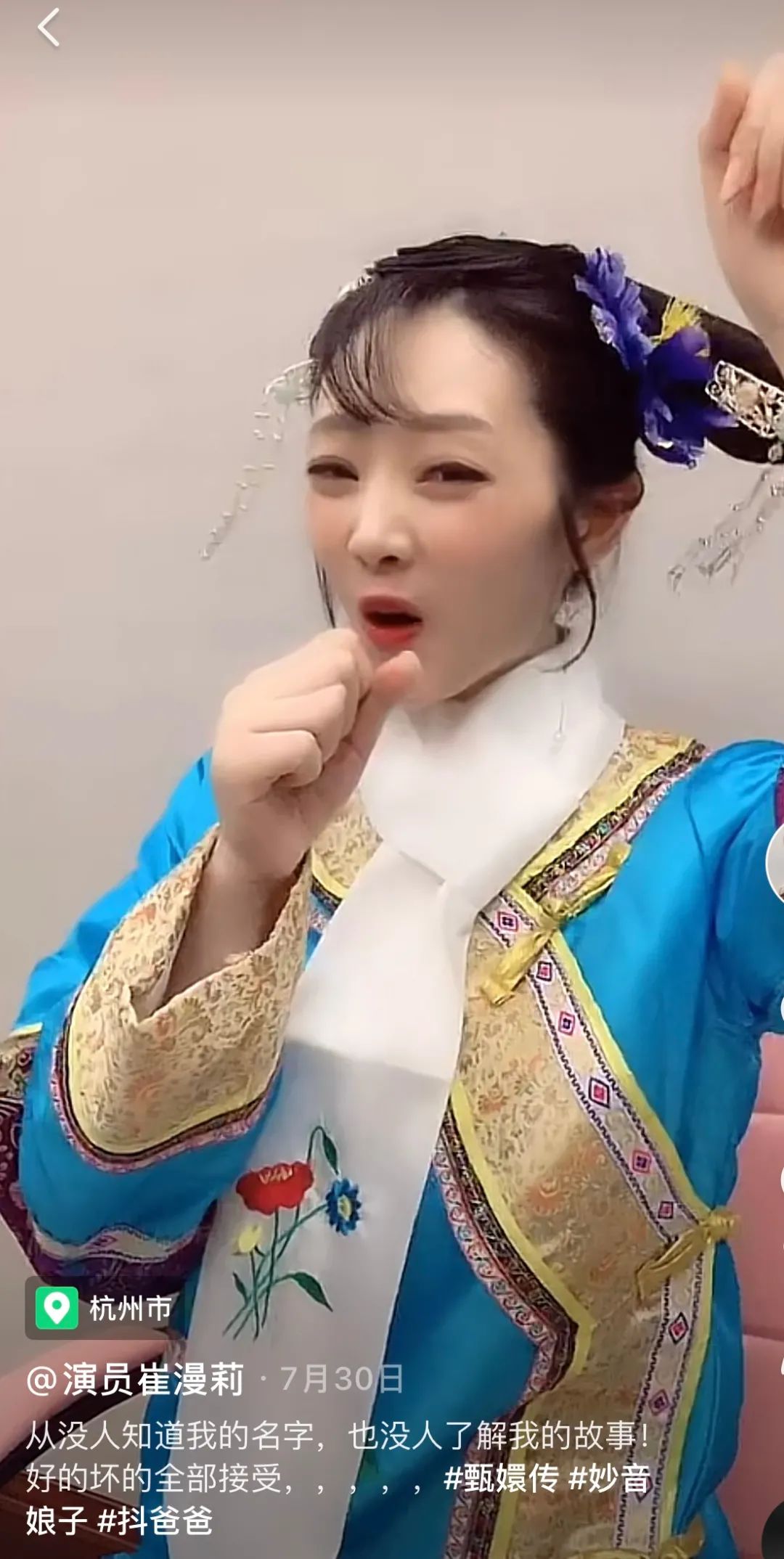 当然了有人欢喜有人忧愁,不知道大家还记不记得“妙音娘子”余莺儿,这十年中好像余莺儿的扮演者崔曼莉并没有特别大的改变。现在也只能每天顶着“妙音娘子”的旗头在某音直播间里面继续“啃老本”。粉丝现在也只有6万多,相比于《甄嬛传》里面其他的娘娘小主还是不足的。