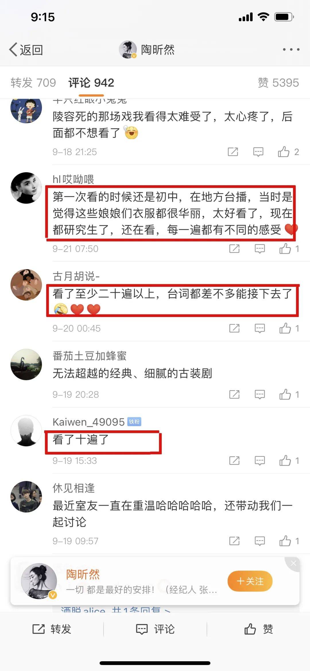 看到很多剧粉留言也是感慨良多,有粉丝说:“真的好快,最开始还在地方台播,那时候上小学每天晚上守着看,又要演到十点,简直就是顶着很大的压力在看(父母会一直催睡觉)反复看+1”。