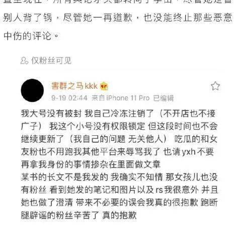 而且主动约她的是任豪,她也只是在小号分享自己的生活,而且说话暧昧的也是任豪啊......最后没想到被绿茶姐妹又再一次爆料,然后因为三位爱豆的粉丝团引导遭到网络暴力,最后删博道歉,而且人家被网络暴力成这样都没有说一句男爱豆的不好。
