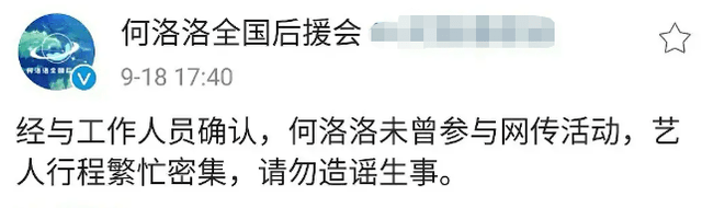 可随后三位偶像的粉丝后援会纷纷澄清,何洛洛粉丝率先出场,表示何洛洛没有去过网传活动,行程很多根本没空。