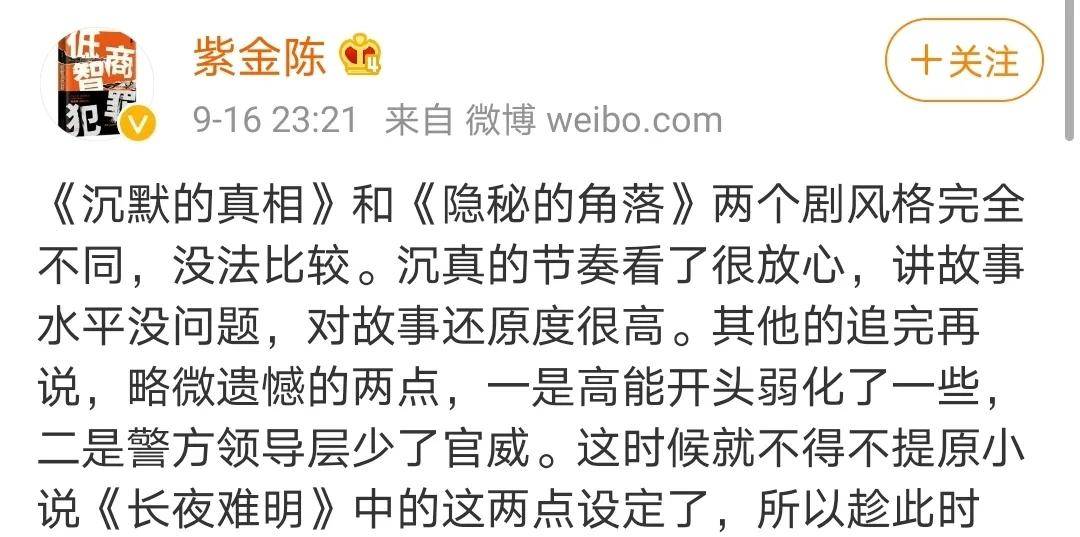 紫金陈自己也是在微博上坦言开篇还是缺少一些高能。