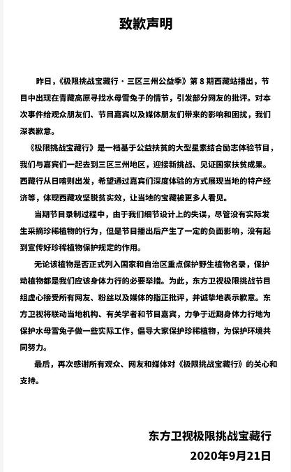《极限挑战》的声明,尽管洗清了节目组破坏国家二级保护植物的"罪名",但是却坐实了节目组造假的嫌疑。