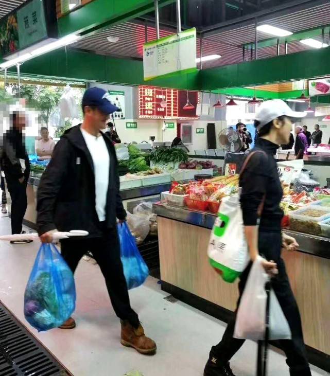 吴京陪着谢楠到菜市场买菜: