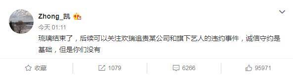在云歌会结束的凌晨,成毅上司钟凯在账号发文,称将对某公司和旗下艺人违约进行追责。在他看来,对方没有诚信守约,而这个矛头直指袁冰妍。毕竟先前钟凯宣传《琉璃》从不带袁冰妍,可见成毅避嫌袁冰妍实际另有隐情,他自己内心也有诸多无奈。