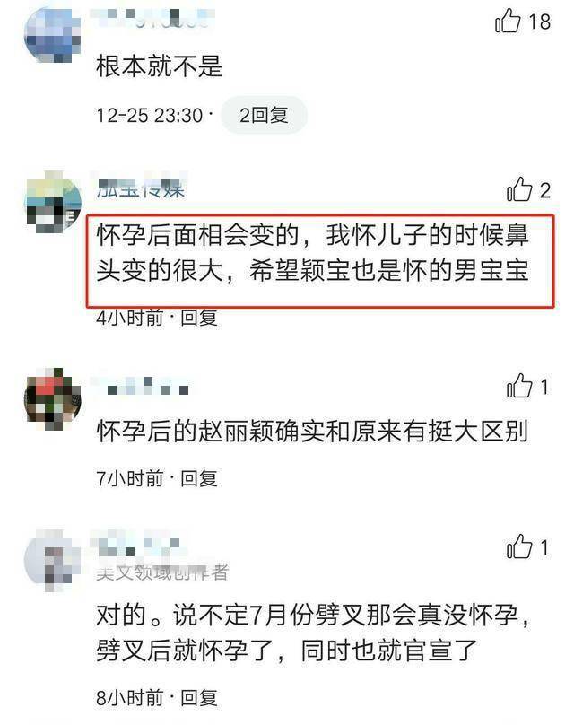有经验的网友告诉大家,赵丽颖样貌出现变化,其实是鼻子变大了,还说自己怀孕时鼻头也变大了,而且感觉她可能怀的是男孩儿,如今看来全猜对了。