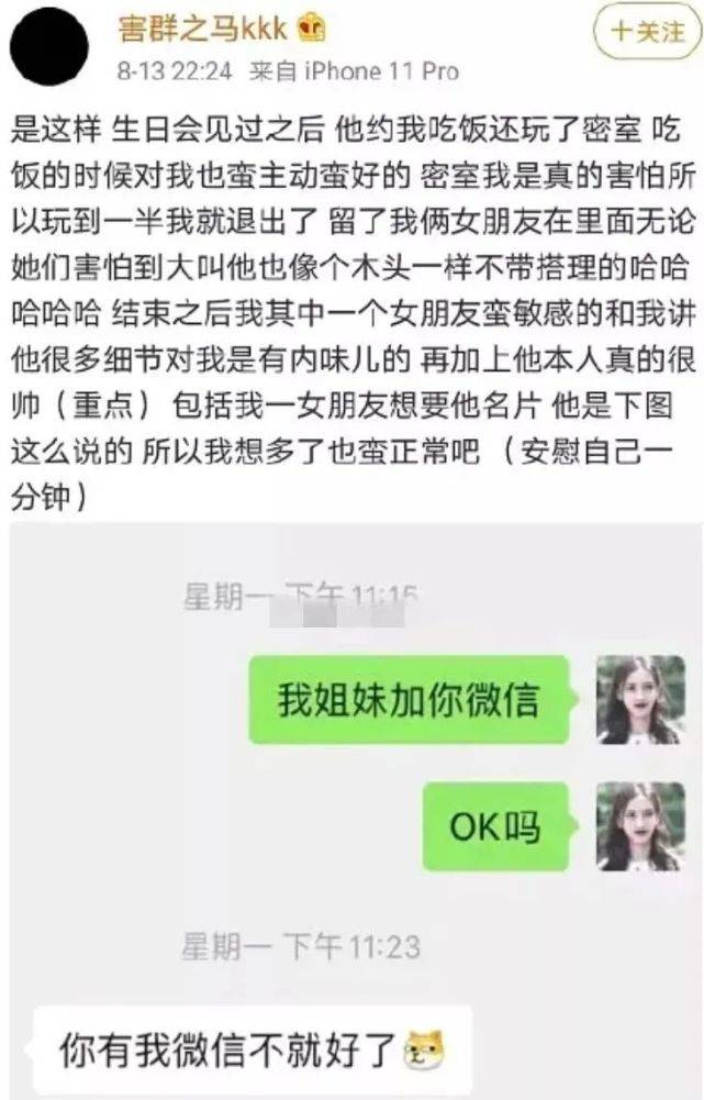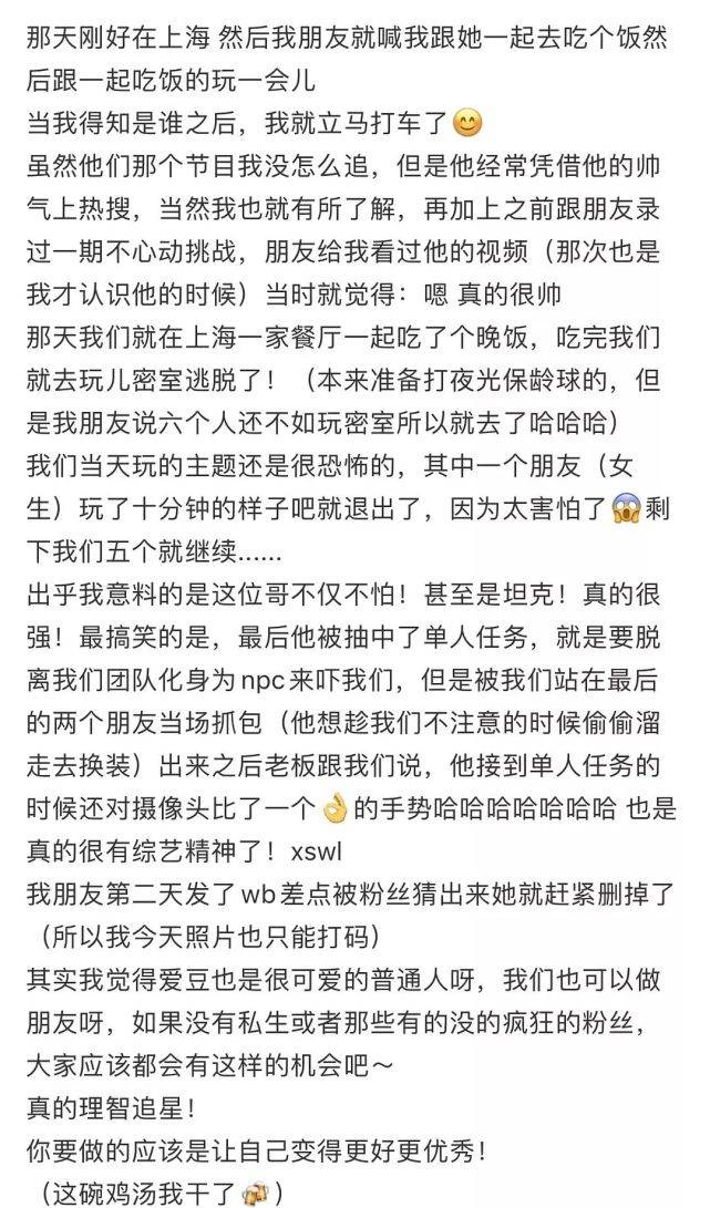 但是这时在某社交网络上,又有人发了一篇笔记,详细的记录了自己参加某朋友生日会认识了男爱豆的心路历程。